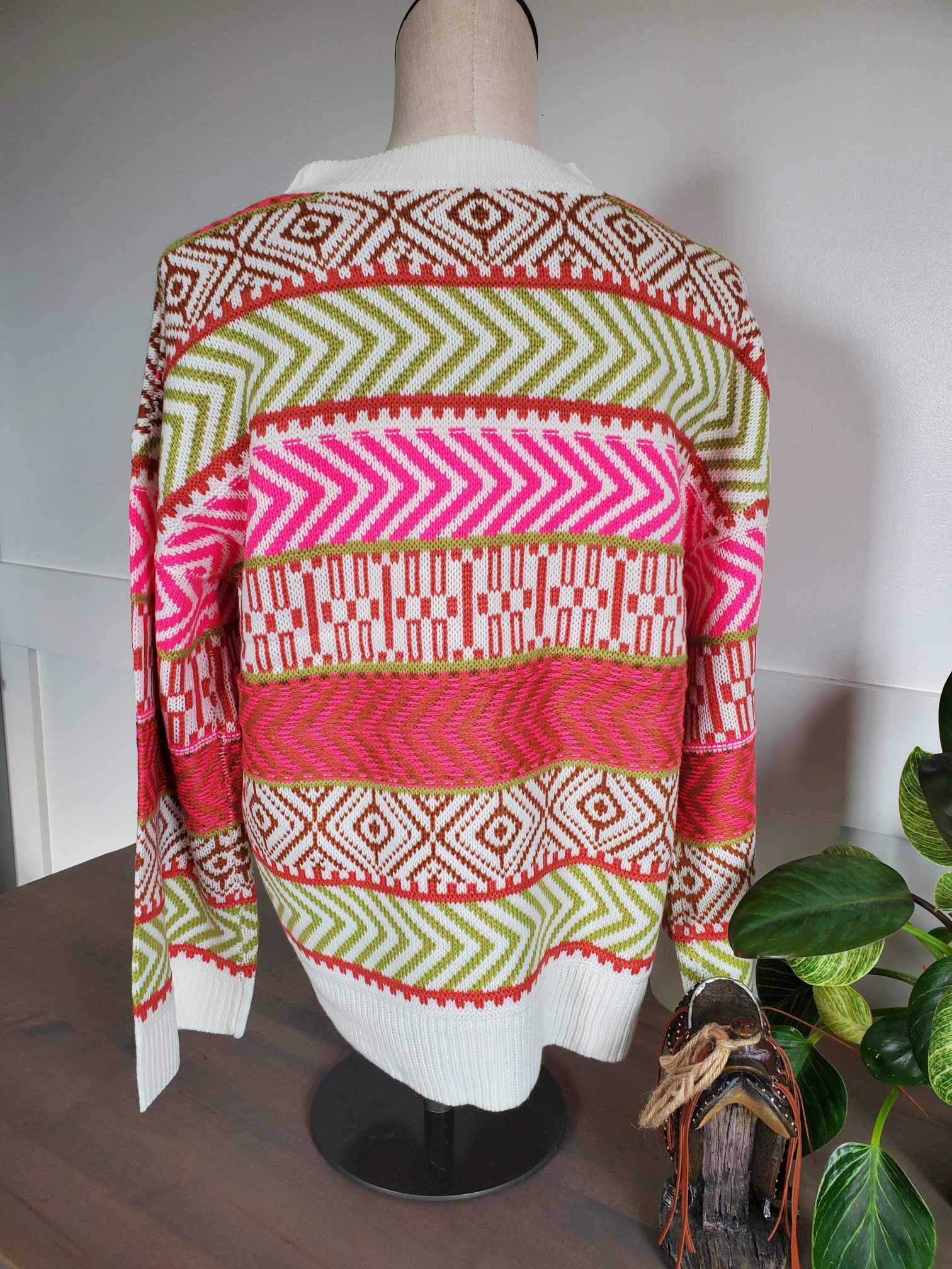 Aztec Print Crew Neck Pullover Sweater