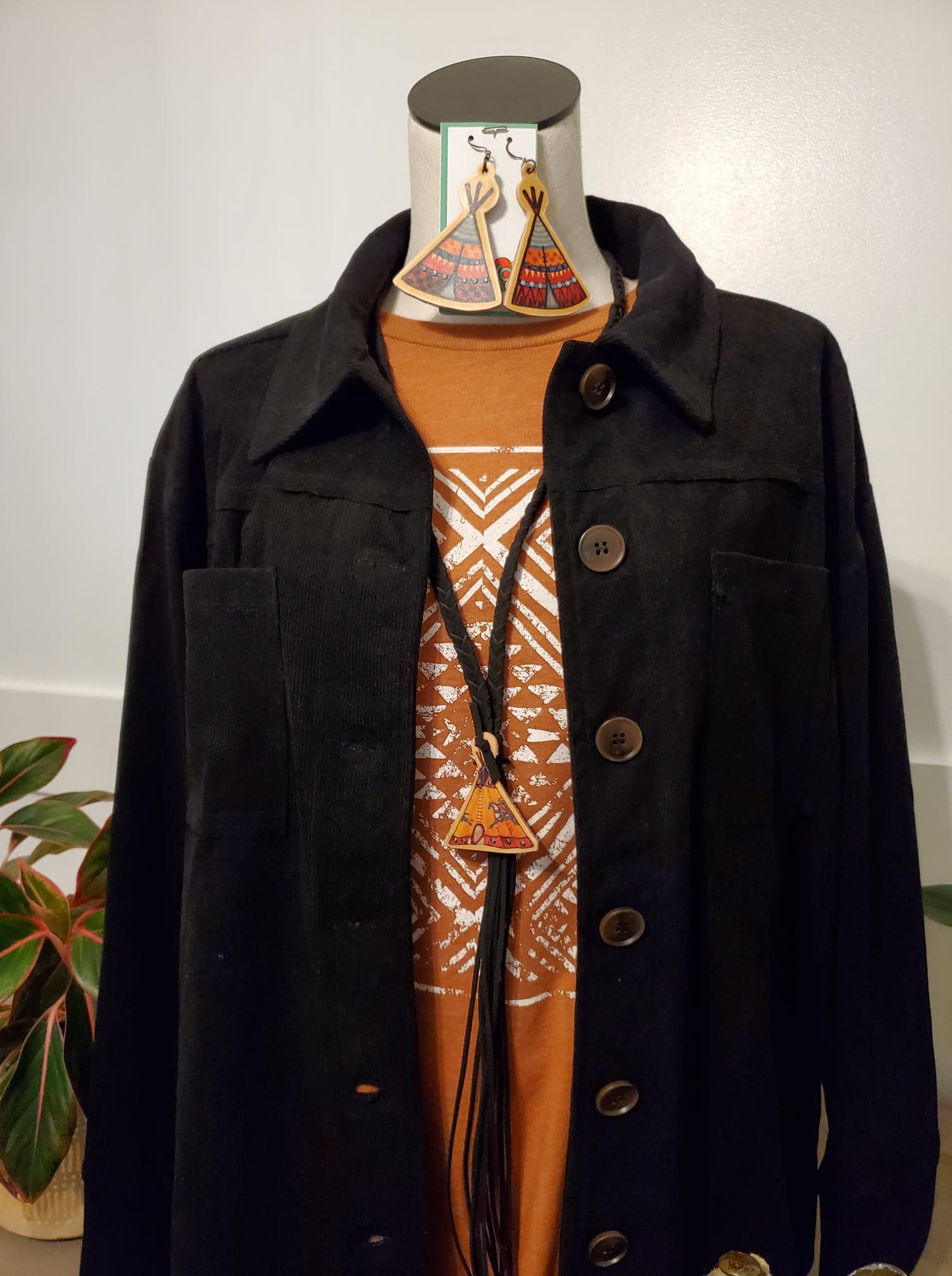 Corduroy Long Sleeve Black Crochet Back Jacket