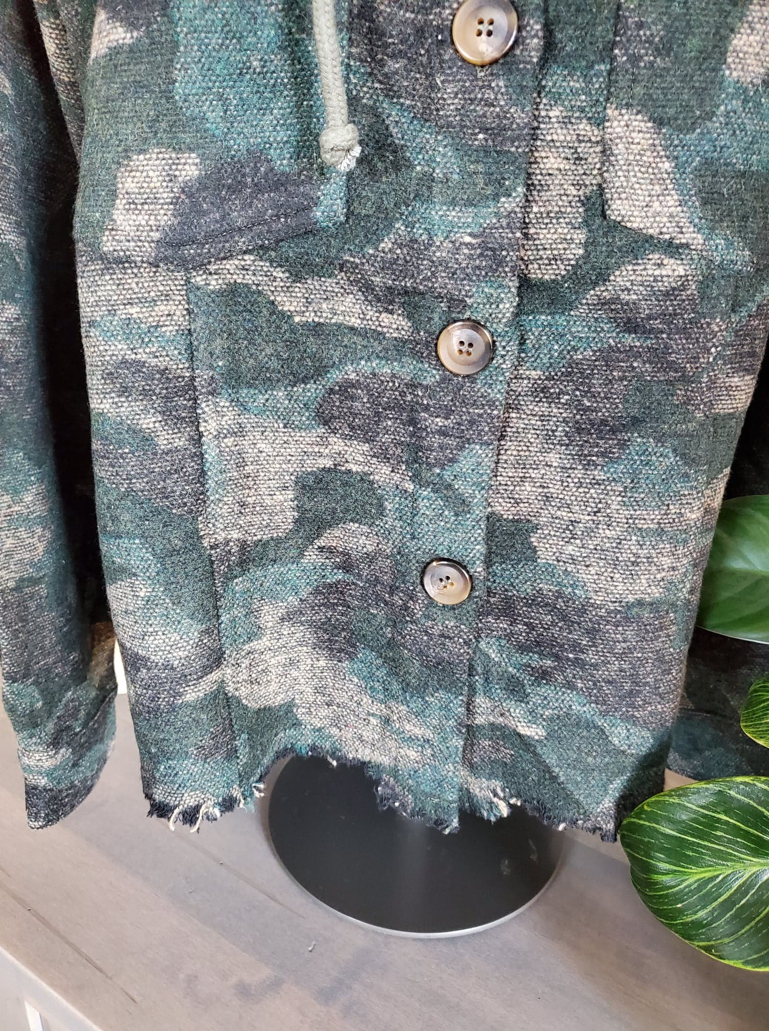 Hunter Green Raw Hem Camo Shirt Jacket With Hoodie