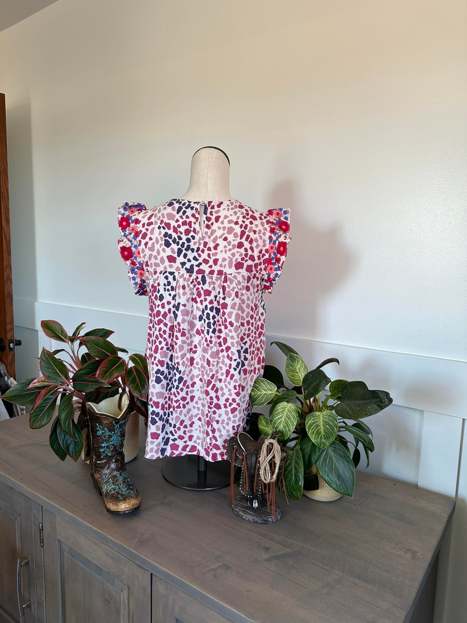 Beautiful Magenta Embroidered Front With Almost like a Magenta Cheetah Print Bottom.