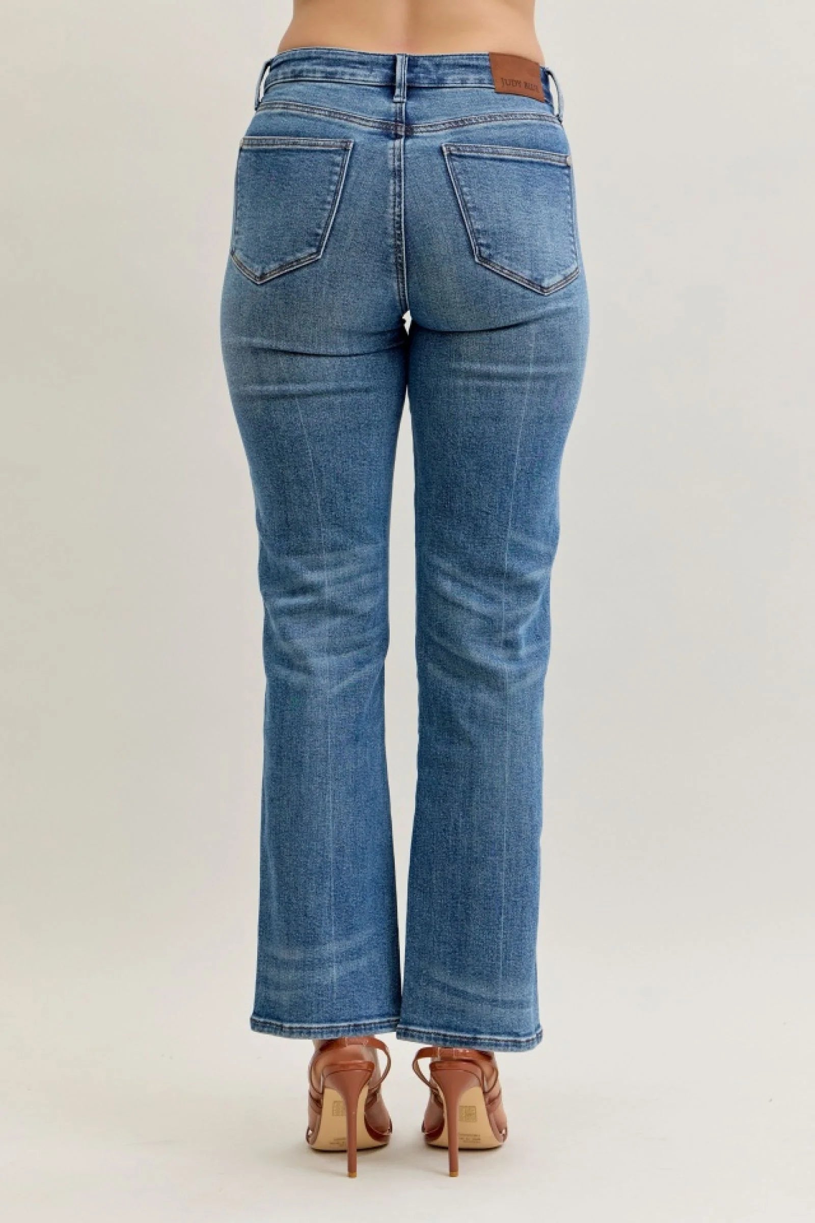- Fabric: Judy Blue Rigid Magic denim — rigid look in front, stretch in back