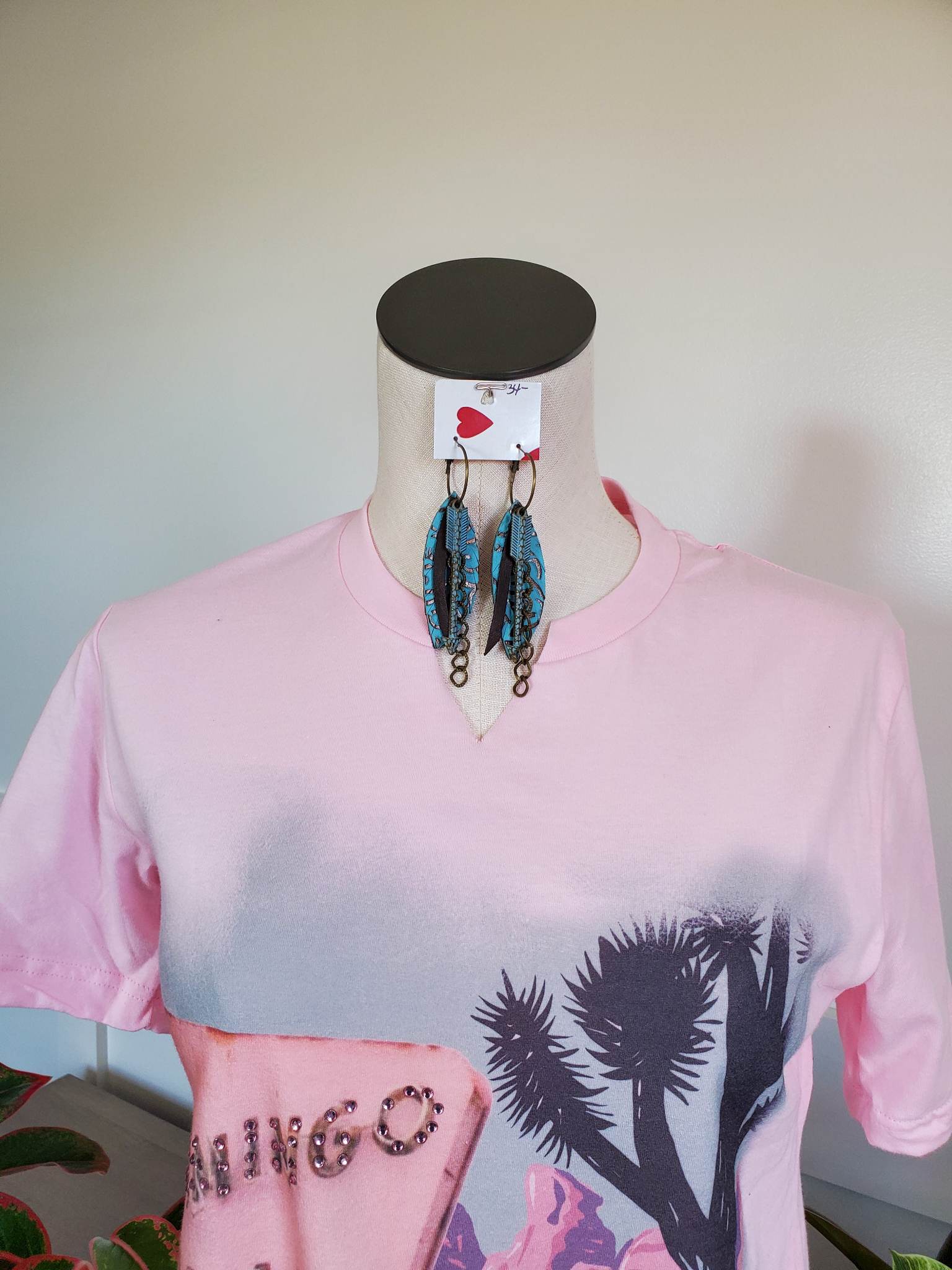 Turquoise Leather Embossed Teardrop Earrings With Matching Arrow